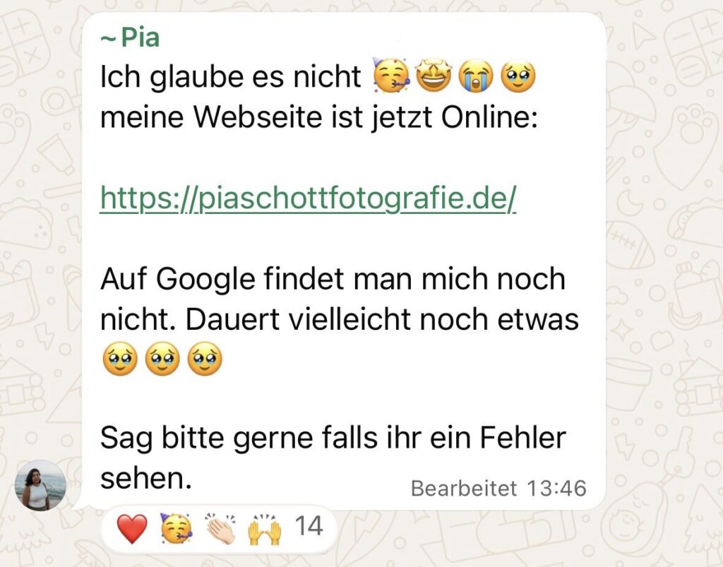 Und statt nur nach Preisen zu fragen, melden sich Menschen bei dir, die wirklich zu dir passen, deine Arbeit wertschätzen und sich schon beim Schreiben der Anfrage auf ihr Shooting freuen.